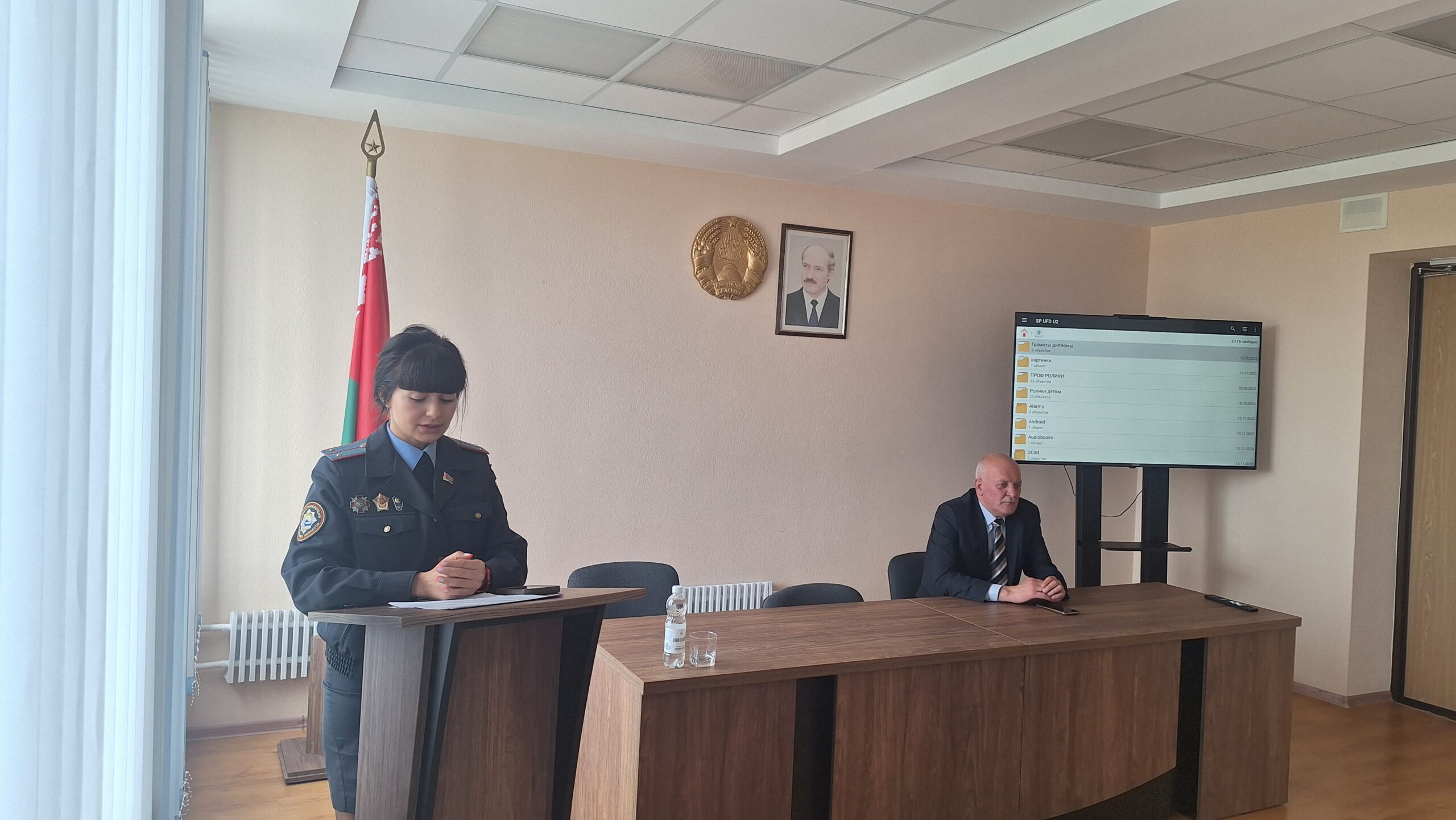 Инспектор ДПС ОГАИ Молодечненского РОВД лейтенант милиции Пашковская Анастасия выступила по теме “Профилактика дорожно-транспортных происшествий с участием водителей мототранспорта и велосипедистов”.